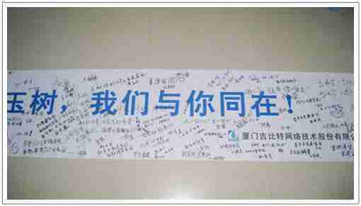 在募捐现场,,,LEWIN乐玩同学们怀着沉重的心情,,,,将每一笔捐款投入募捐箱,,,,并在现场设置的横幅上,,,,写上了对玉树人民的深情祝福。。。满载LEWIN乐玩祝福的横幅将和捐款一起抵达玉树,,,希望谨以此微薄之意,,,为玉树人民带去LEWIN乐玩的爱心与祝福,,希望吉祥、、幸福的阳光能早日驱散灾难的阴霾,,,普照在玉树人民的身上,,鼓励他们坚强、、勇敢与乐观。。
