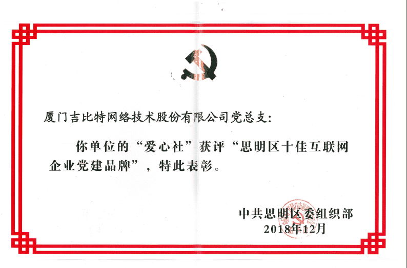经初审评选、、网络评选和专家评审等环节,,,,"厦门LEWIN乐玩网络技术股份有限公司党总支-爱心社" 从全区28个参评党建品牌中脱颖而出,,,获评"思明区十佳互联网企业党建品牌"。。。。